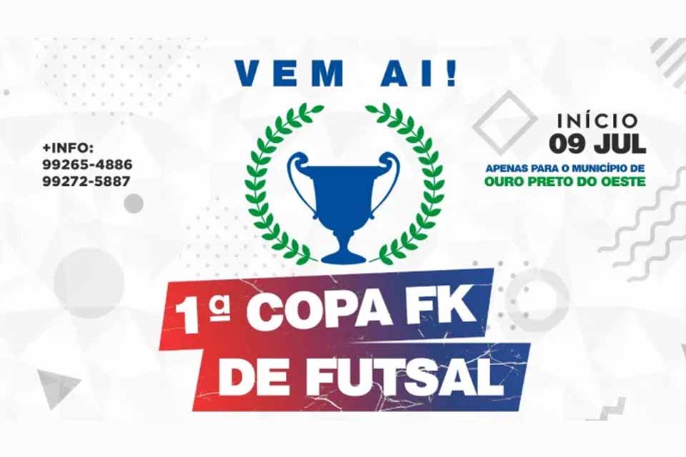 A prefeitura da Estância Turística Ouro Preto do Oeste através da Secretaria de Turismo Cultura e Esporte realiza 1º Copa FK de Futsal. A competição terá inicio no próximo dia 09 de julho, contará somente com atletas do município.