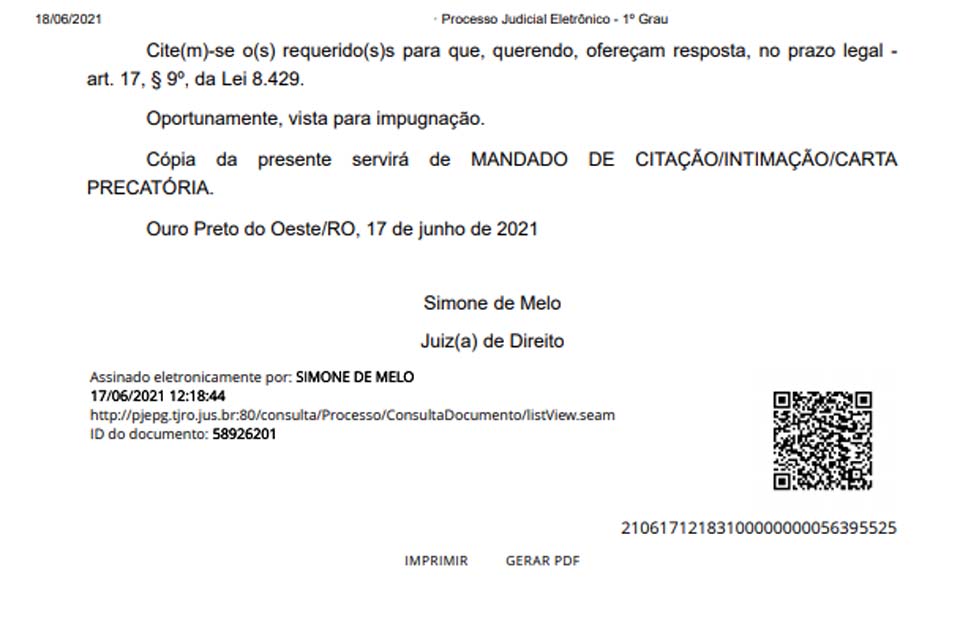 Os envolvidos foram citados, com isso, para responderem à ação dentro do prazo legal. Todos têm direito ao contraditório e à ampla defesa.
