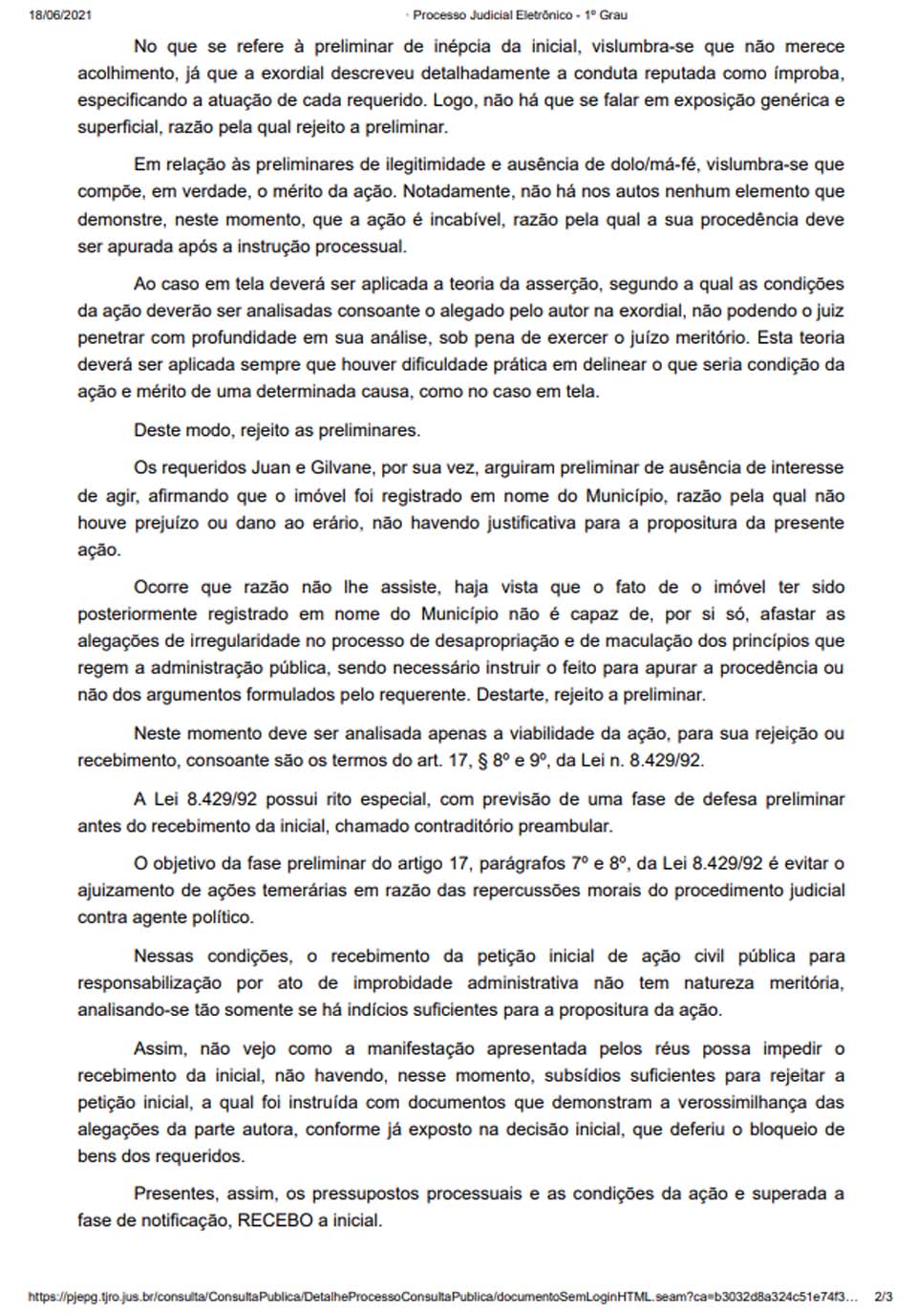 “Assim, não vejo como a manifestação apresentada pelos réus possa impedir o recebimento da inicial, não havendo, nesse momento, subsídios suficientes para rejeitar a petição inicial, a qual foi instruída com documentos que demonstram a verossimilhança das alegações da parte autora, conforme já exposto na decisão inicial, que deferiu o bloqueio de bens dos requeridos”.