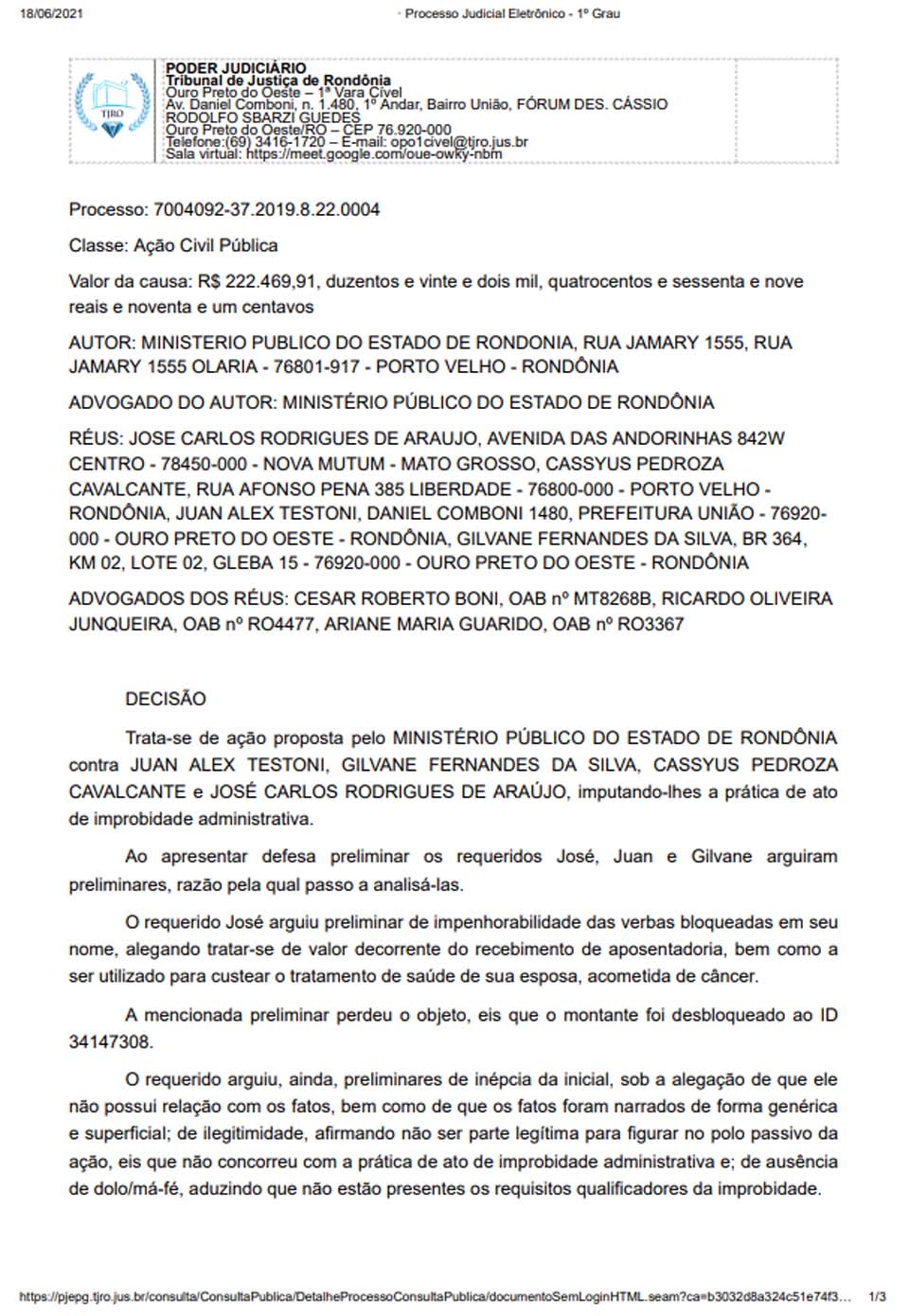 Em suma, a acusação do Ministério Público (MP/RO) narra, em resumo, “que os requeridos praticaram atos de improbidade administrativa, os quais causaram prejuízo ao erário, enriquecimento ilícito e violação aos princípios da Administração Pública”.