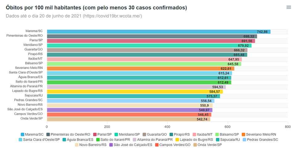 “Marema encabeçava a estatística de óbitos por habitantes, seguida por Pimenteiras do Oeste, cidade na fronteira de Rondônia com a Bolívia, e Parisi, no noroeste paulista. Esse dado, tão importante para definir políticas públicas certeiras, deveria ser divulgado e levado em conta pelo Ministério da Saúde. Mas, como tantos outros conhecimentos objetivos, perdeu-se na zona cinzenta que virou o combate à pandemia pelo governo federal”.