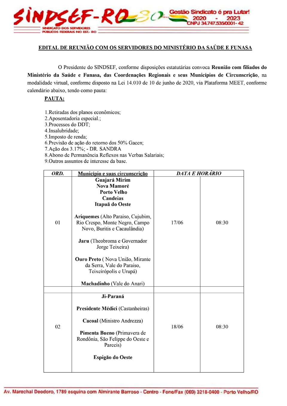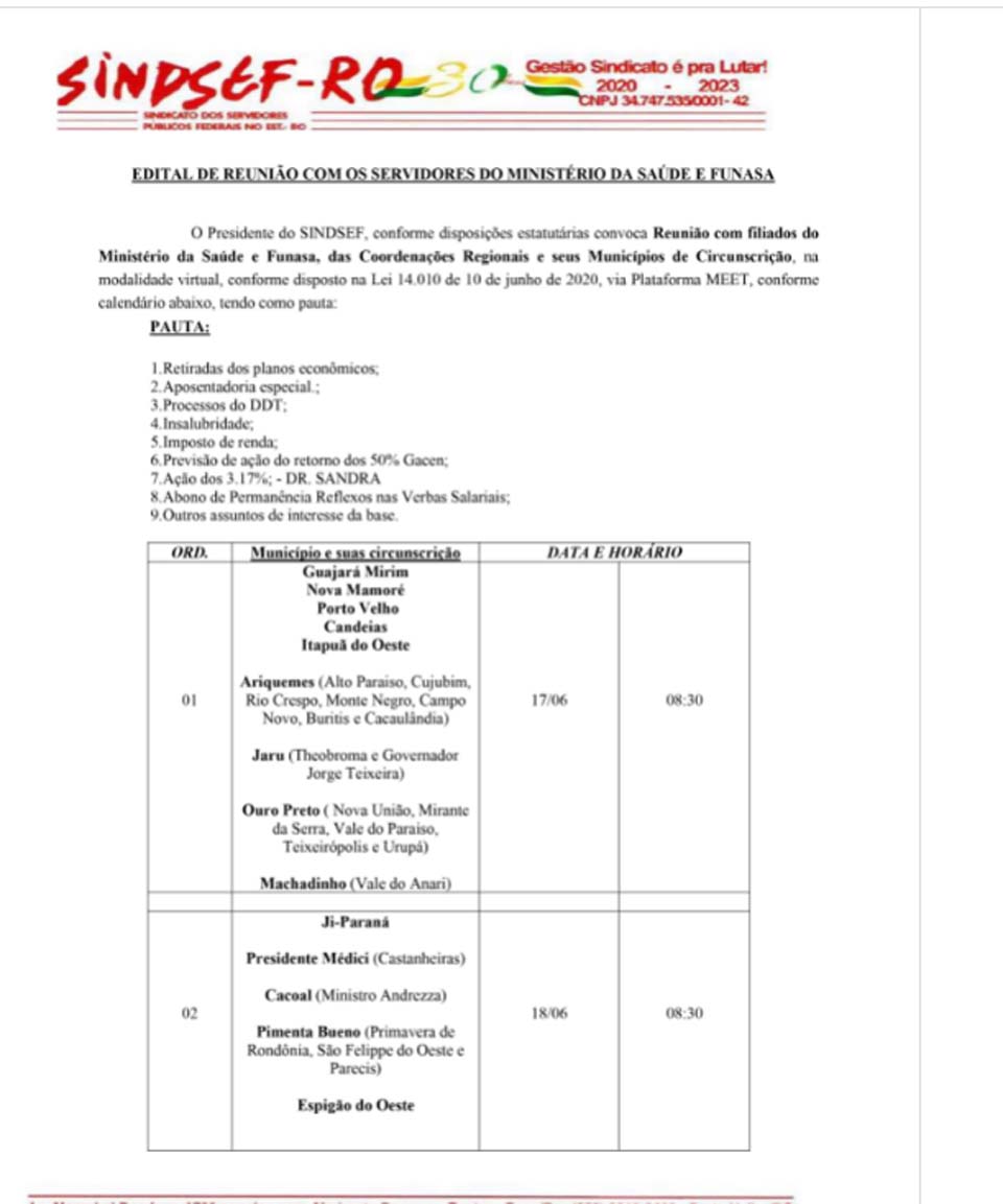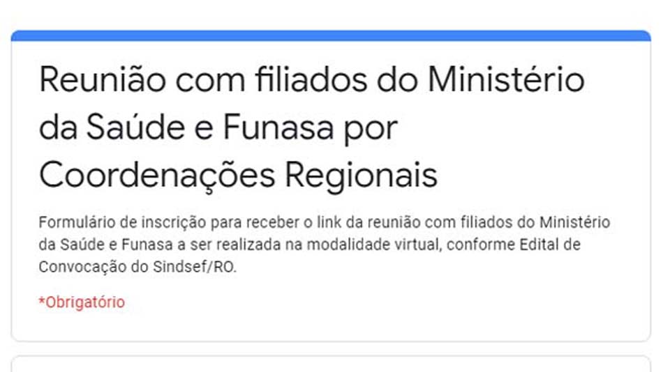 Preencha o formulário de inscrição para receber o link e participar da reunião com filiados do Ministério da Saúde e Funasa a ser realizada na modalidade virtual, conforme Edital de Convocação acima.