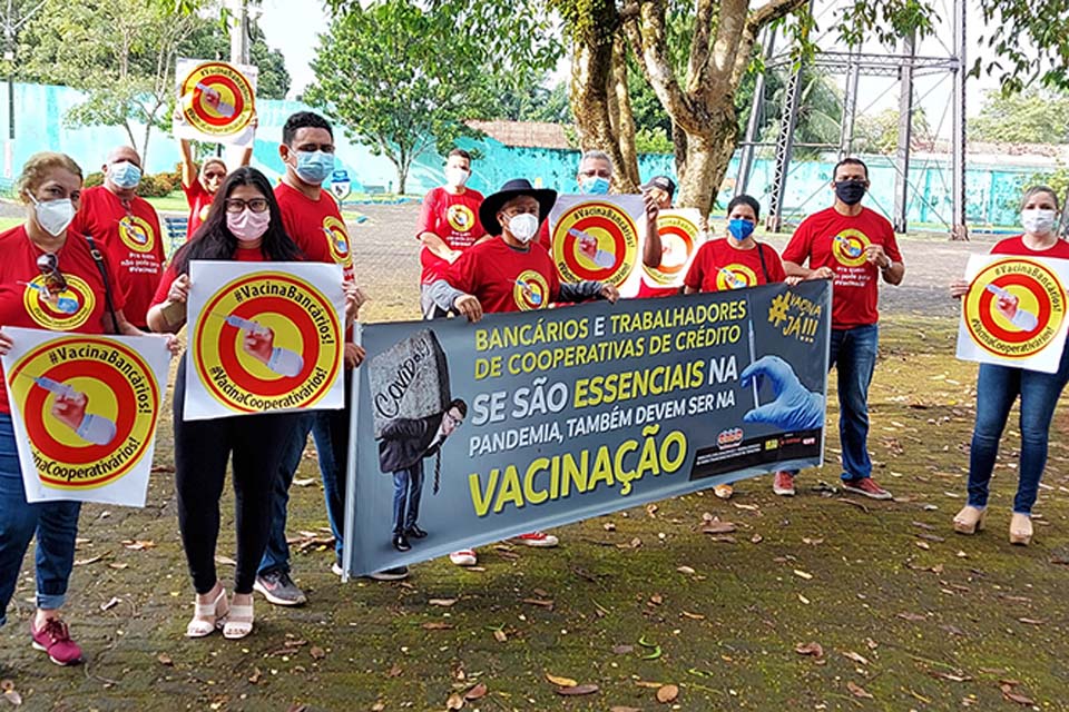 Bancários de Rondônia promoveram, na manhã desta sexta-feira (18/6) uma carreata pelas principais ruas da região Central de Porto Velho, com o objetivo de conscientizar não apenas a população, mas principalmente os representantes da classe política rondoniense para a importância da inclusão dos bancários e trabalhadores das cooperativas de crédito no Plano Nacional de Imunização (PNI), bem como nas campanhas estratégicas do Estado e dos municípios de vacinação contra a covid-19.