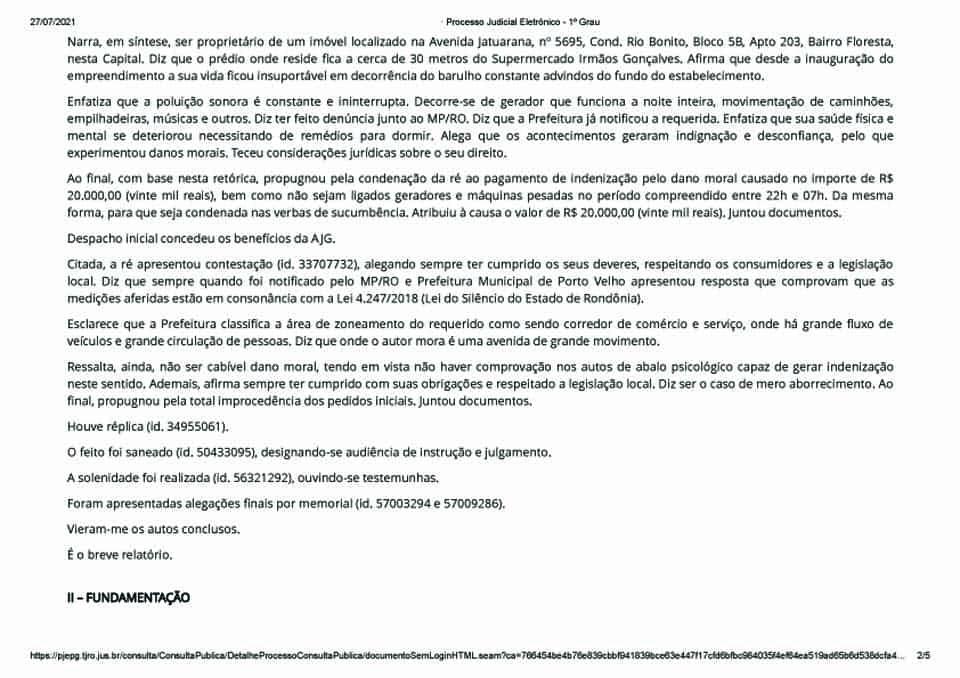Ademais, como mencionado em sede de contestação, a Prefeitura do Município de Porto Velho classifica a área de zoneamento do requerido como sendo corredor de comércio e serviço, onde há grande fluxo de veículos e grande circulação de pessoas. Nesta esteira, a Avenida tende a ser ruidosa. O empreendimento valorizou os imóveis que estão no entorno e algum tipo de ruído vai existir por causa das suas atividades. Todavia, como já explanado no veredito, os níveis de ruído não estão acima do permitido em lei, o que não seria crível penalizar o estabelecimento comercial neste sentido.