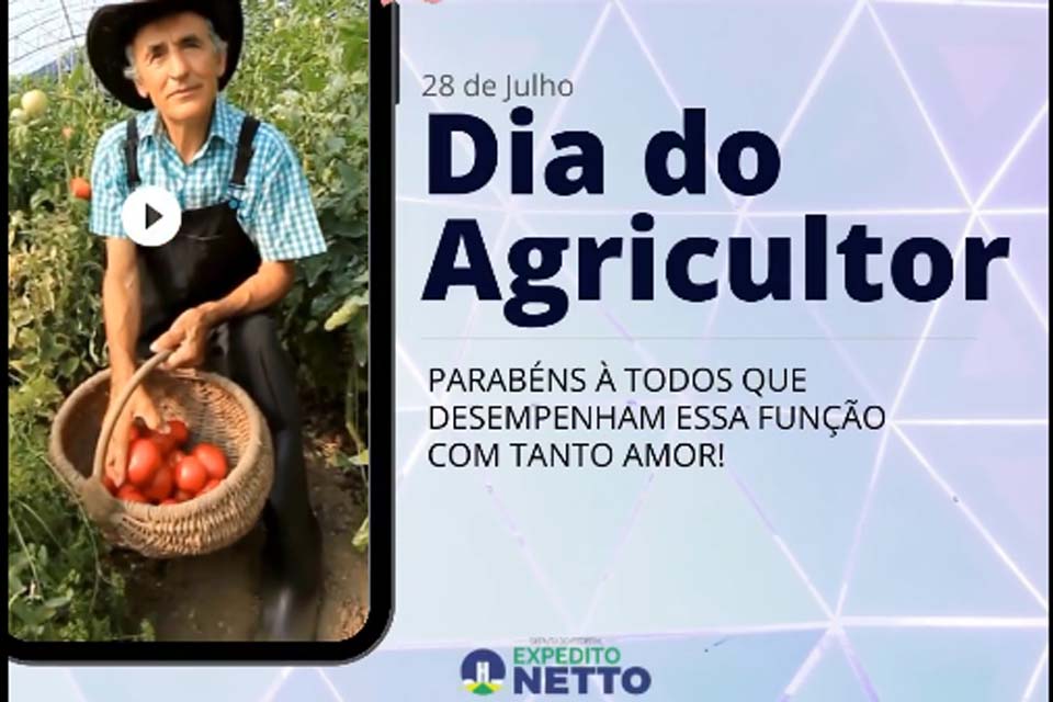 Brasília;DF - O deputado Federal Expedito Netto, na data de hoje (28), em que se comemora o Dia do Agricultor, parabenizou a todos os agricultores, umas das mais importantes classes de trabalhadores, que inpulsionam a economia do país, e em especial, aos agricultores e produtores rurais de Rondônia. Em rede social, o parlamantar publicou uma mesagem exaltando o valor e importância dos agricultores e trabalhadores rurais para o desenvolvimento economico do Estado de Rondônia.