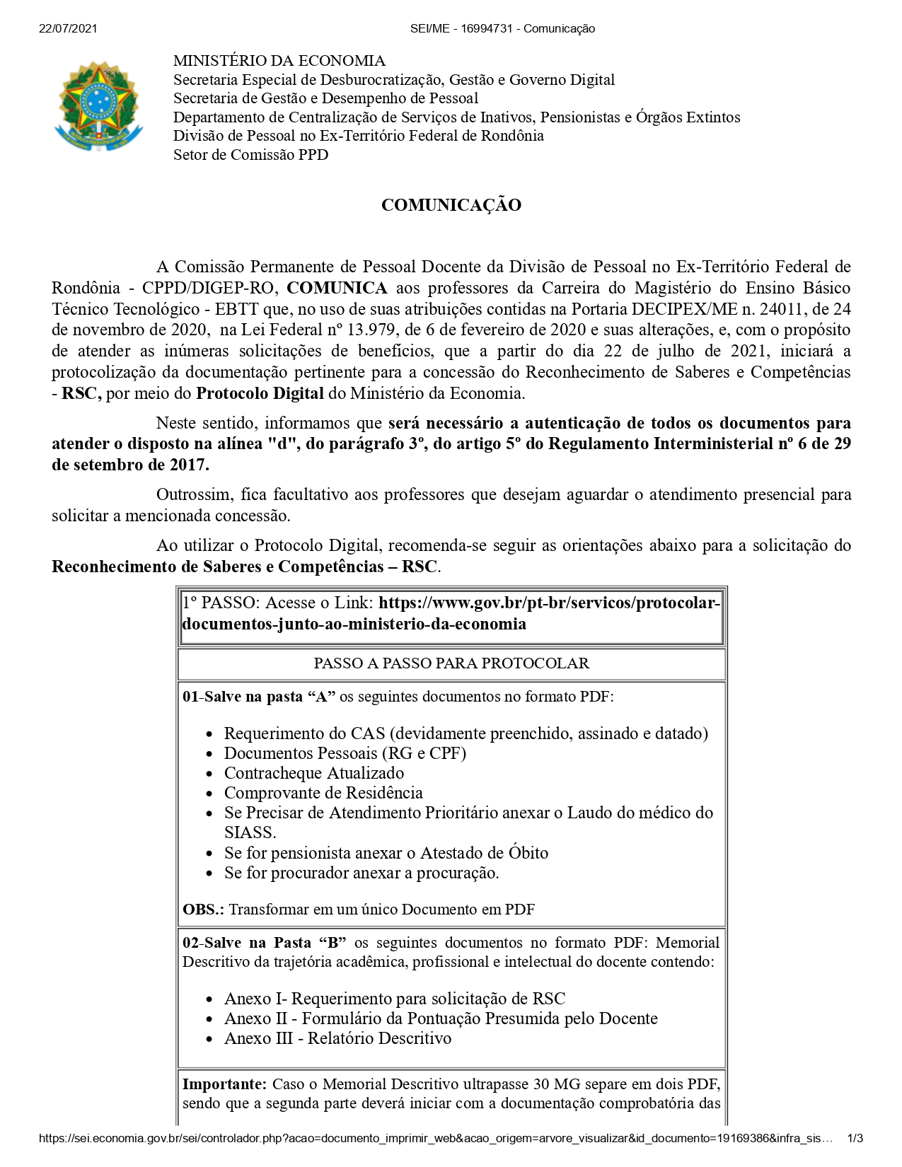 CONFIRA COMUNICADO OFICIAL DA CPPD COM O PASSO A PASSO DE COMO PROCEDER