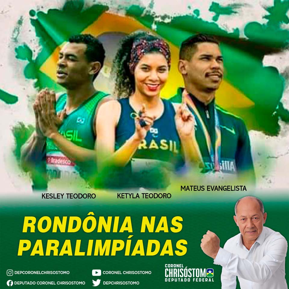 "Rondônia tem três Atletas Paralímpicos em Tóquio, representando o nosso Brasil. Kesley Teodoro e Ketyla Teodoro (os irmãos Teodoro) e Mateus Evangelista, esses são os nomes dos nossos atletas de Rondônia que nos orgulha muito, pois são exemplo de superação e força de vontade", frisou o deputado.
