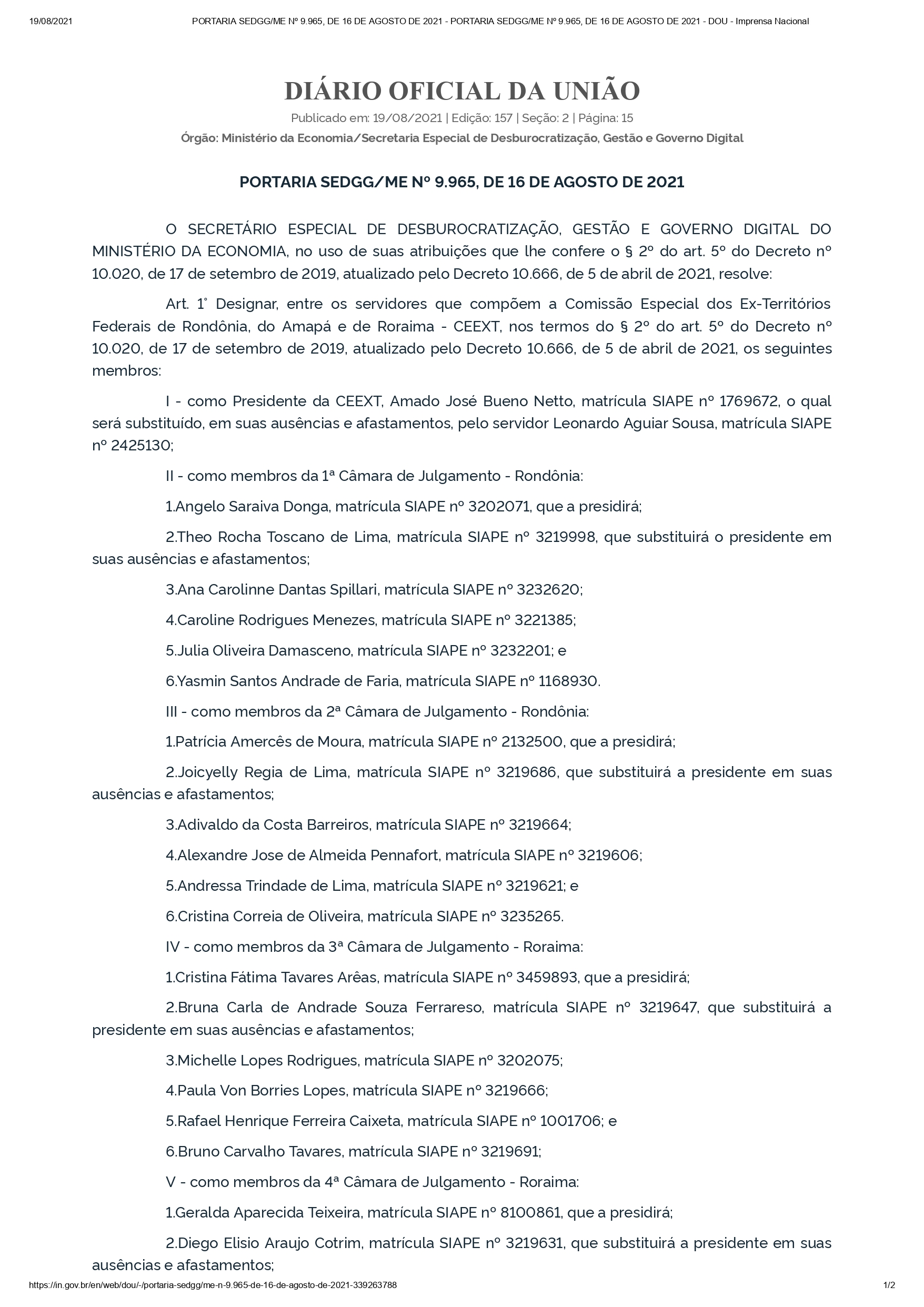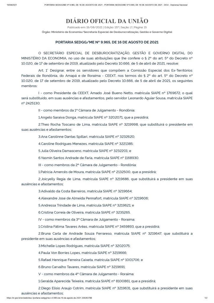 Enfim, são várias demandas funcionais que carecem da atenção da Comissão Especial dos Ex-Territórios Federais de Rondônia, do Amapá e de Roraima – CEEXT, dos parlamentares de Rondônia e do Ministério da Economia.