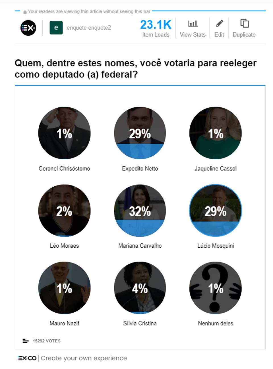 Porto Velho, RO – Na última sexta-feira (06), o jornal eletrônico Rondônia Dinâmica lançou enquete para saber dos seus leitores e leitoras quem dentro os oito deputados federais teria maiores condições de ser reeleito (a) em 2022.