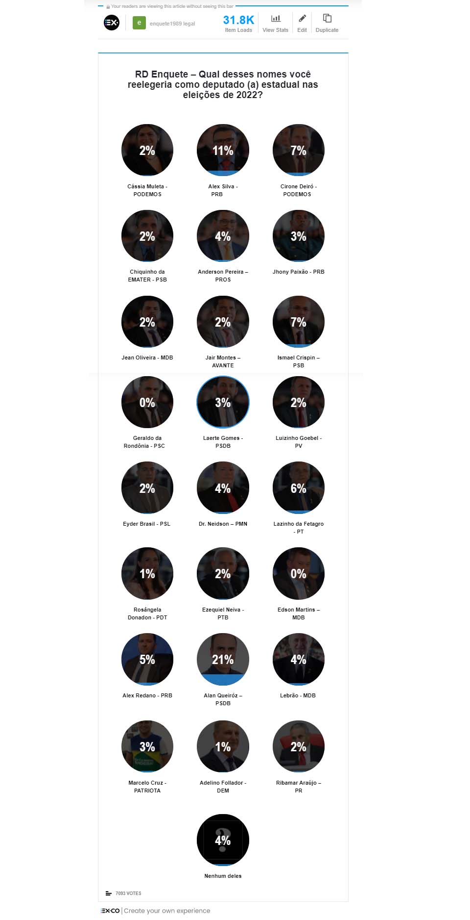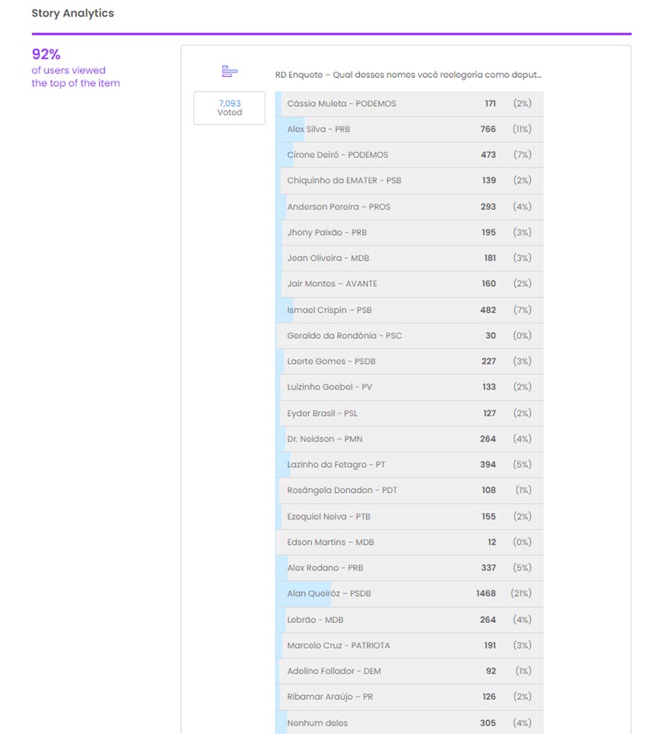 Porto Velho, RO – Na última sexta-feira (13), o jornal eletrônico Rondônia Dinâmica lançou enquete para saber dos seus leitores e leitoras quem dentre os vinte e quatro deputados estaduais teria maiores condições de ser reeleito (a) em 2022.