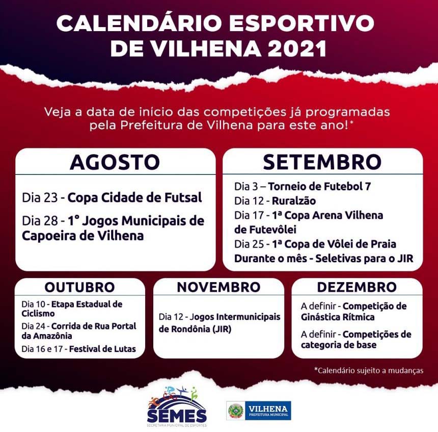 SEMES APRESENTA CALENDÁRIO variado de atividades esportivas para 2021 em Vilhena