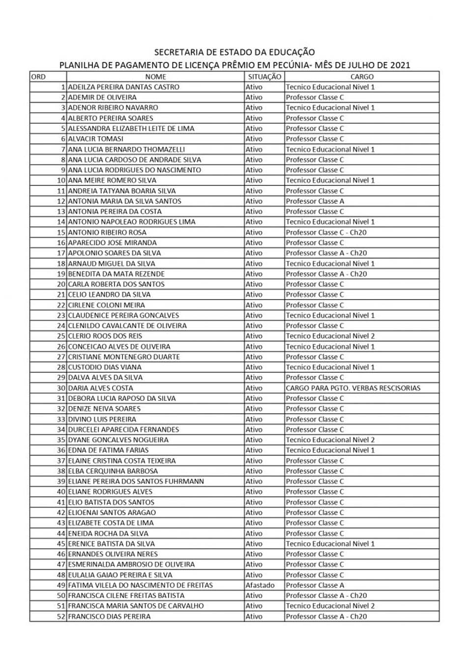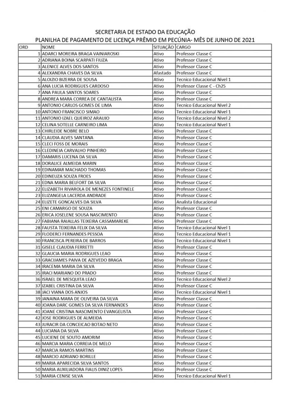 Seguindo a recomendação do Sintero e em busca de promover transparência nas ações, a Secretaria de Estado da Educação (Seduc) divulgou a lista com o nome dos servidores e servidoras que tiveram as licenças prêmios pagas em pecúnia nos meses de junho e julho de 2021.