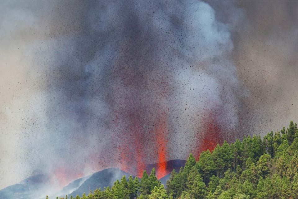 A lava do vulcão Cumbre Vieja continua a arrastar tudo em seu caminho e desce em direção à costa da ilha de La Palma. Há o receio de que, quando se der o contato com a água do Oceano Atlântico, possam ser emitidos ainda mais gases tóxicos.