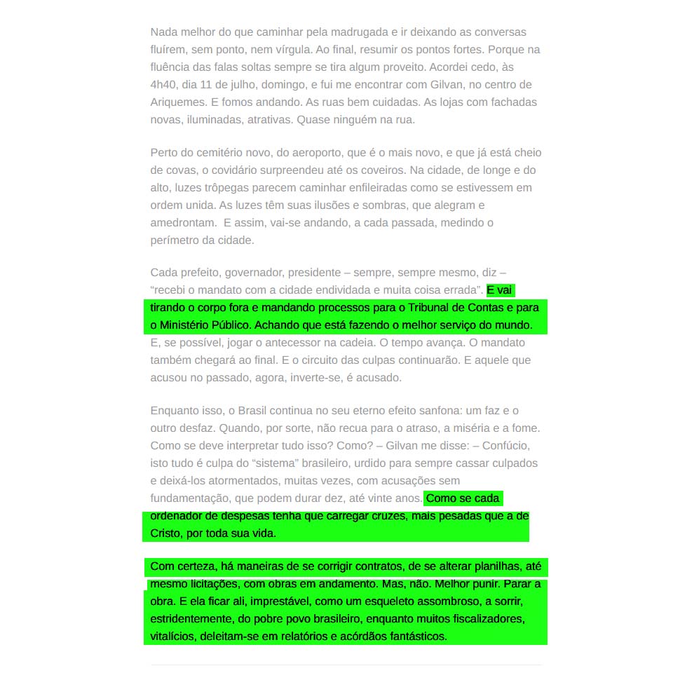 Para além disto, Confúcio Moura ainda nivela o calvário de ordenadores de despesas – geralmente políticos –, ao peso da cruz de Cristo. Aliás, nivelar seria um termo equivocado. Ele dá a entender que o peso nas costas de quem é responsável pela Administração Pública seria até maior.