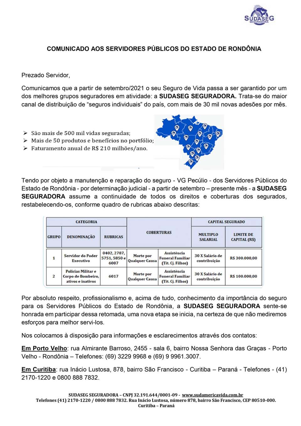 A partir de Setembro/2021 o Seguro de Vida passa a ser garantido pela SUDASEG SEGURADORA. Após um longo processo judicial, obtivemos êxito de retornarmos ao Seguro de Vida, com o mesmo valor e agora com Lei Estadual que permite o desconto no contracheque do servidor.