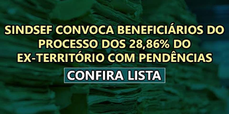 O Sindicato dos Servidores Públicos Federais no Estado de Rondônia – Sindsef/RO convoca os servidores CONSTANTES NA RELAÇÃO NOMINAL, beneficiários do processo dos 28,86% do Ex-Território (2007.41.00003678-3), que tem como patrono o Escritório Olympio Moraes Junior & Adv. Associados, , para que compareçam a uma das Coordenações Regionais ou Sede Administrativa do sindicato e apresentem documentação solicitada: