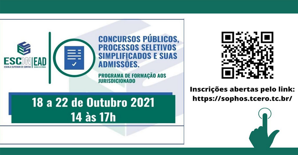 As inscrições são gratuitas e só podem ser feitas pelo portal da Escola Superior de Contas, neste endereço: https://sophos.tcero.tc.br/. Lembrando que as vagas para o curso são limitadas.