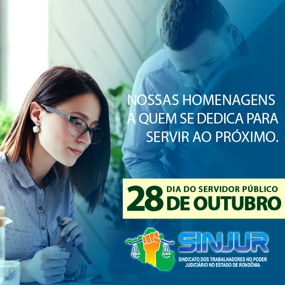 E neste 28 de outubro, o dia que lhe é destinado, o SINJUR reconhece o empenho de cada um de vocês naquilo que lhes compete, no alcance de grandes conquistas.
