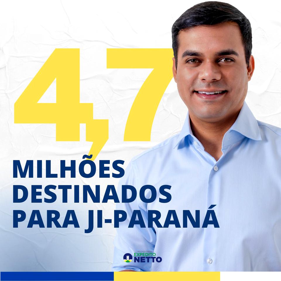 Ji-Paraná;RO - O Deputado Federal Expedito Netto (PSD-RO), destinou R$ 4,7 milhões em recursos para Ji-Paraná, valor que será aplicado em investimentos de infraestrutura e demais melhorias para a maior cidade da região central de Rondônia e que celebrou 44 anos de emancipação econômica e política na última segunda-feira (22), como uma extensa programação comemorativa.