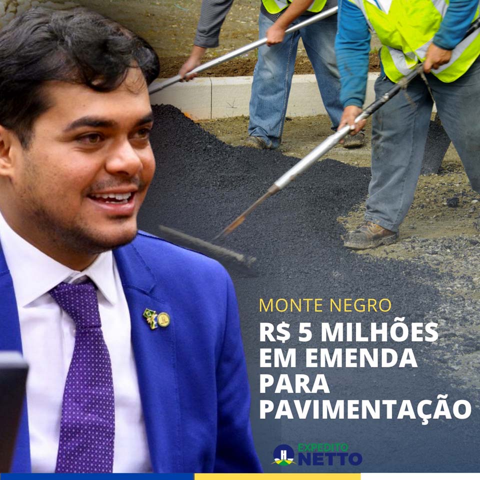 Monte Negro;RO - O Deputado Federal Expedito Netto (PSD-RO) destinou por meio de emenda de sua autoria, R$ 5 milhões em recursos para obras de pavimentação no município de Monte Negro. O anúncio do valor do investimento em infraestrutura no município, feito na última quarta-feira (17), de acordo com o parlamentar, é um dos maiores já destinado e foi um pedido do Prefeito Ivair e vereadores, com quem o deputado mantém firme parceria de trabalho em prol da população local.