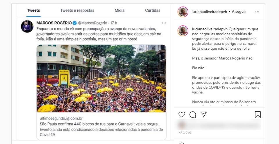 Por exemplo, agora, com o retorno exponencial de casos de Coronavírus (COVID-19/SARS-CoV-2), Rogério se manifestou contra a realização do Carnaval em 2022.
