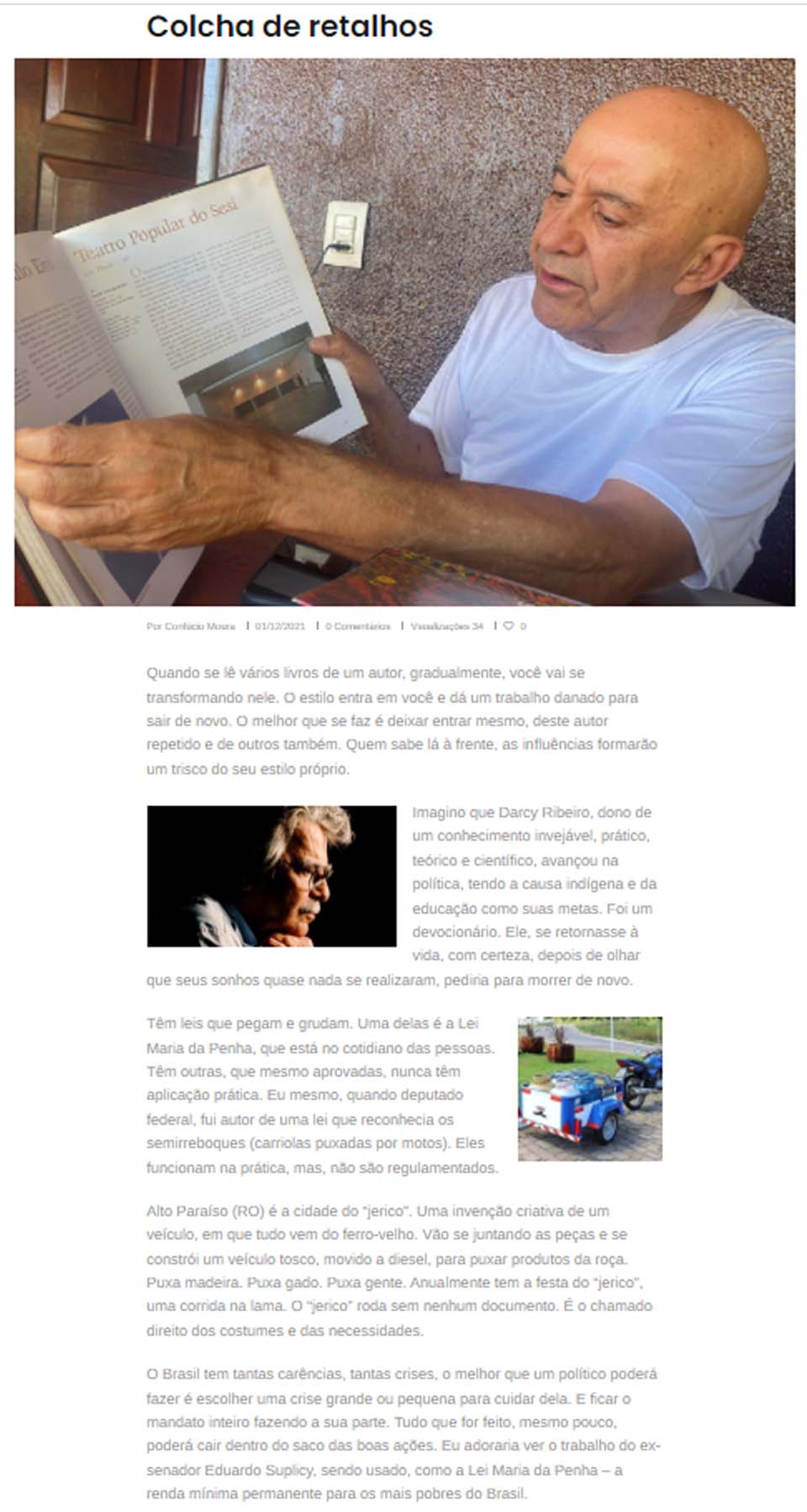Porto Velho, RO – O senador licenciado de Rondônia Confúcio Moura, eleito pelo MDB, veiculou em seu blog particular homônimo mais um texto.