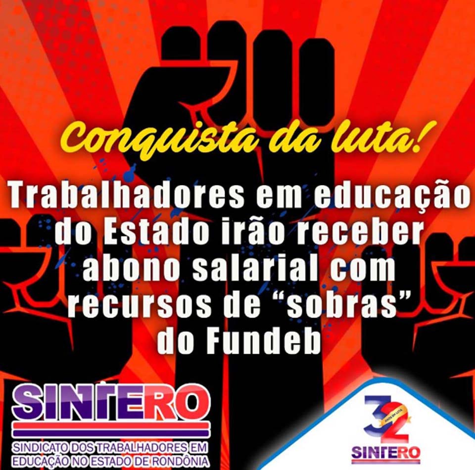 O Sintero ressalta que a luta para que os recursos provenientes de sobras do Fundeb fossem revertidos em valorização salarial foi uma reivindicação tratada em mesa de negociação com o Secretário de Estado da Educação, onde o sindicato expôs a necessidade de reconhecimento aos trabalhadores que se dedicaram ao longo da pandemia em ofertar uma Educação de qualidade, mesmo não havendo contrapartida financeira da Administração Pública no desenvolvimento de suas atividades.