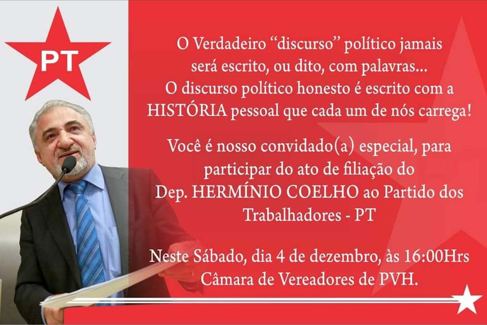 Porto Velho, RO – O ex-deputado estadual Hermínio Coelho volta ao Partido dos Trabalhadores (PT) neste próximo sábado (04) de maneira oficial.