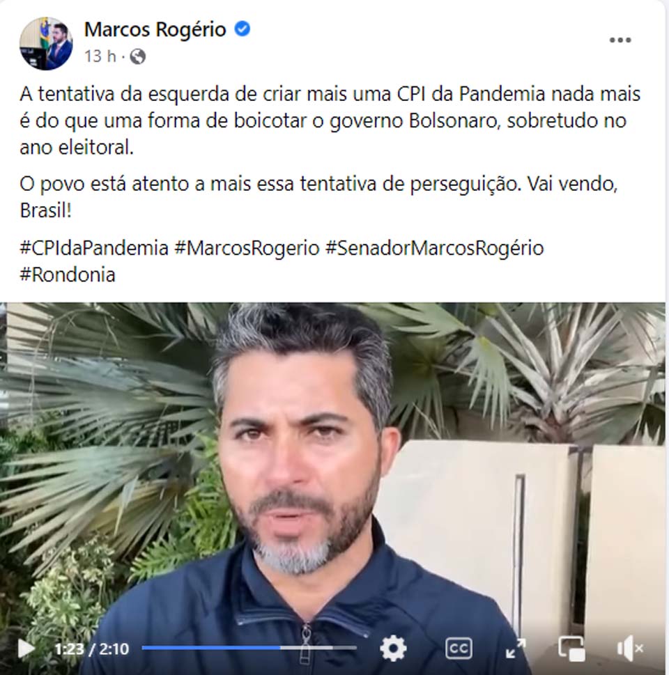 "A tentativa da esquerda de criar mais uma CPI da Pandemia nada mais é do que uma forma de boicotar o governo Bolsonaro, sobretudo no ano eleitoral. O povo está atento a mais essa tentativa de perseguição. Vai vendo, Brasil! #CPIdaPandemia #MarcosRogerio #SenadorMarcosRogério #Rondonia".