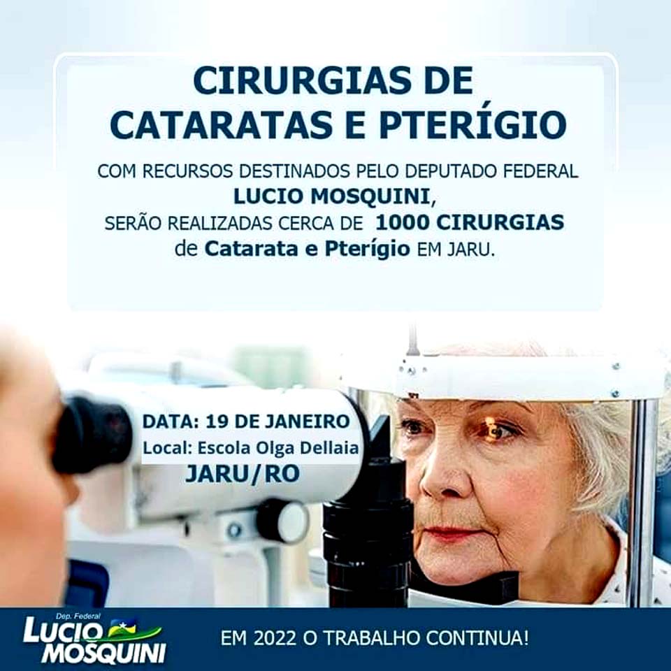 O mutirão que começou no último dia 13, vai até o próximo dia 20 de janeiro, e está sendo desenvolvido pelo Governo de Rondônia. O projeto atende pacientes de Jaru e dos municípios próximos, como: Buritis, Campo Novo, Machadinho do Oeste, Alvorada do Oeste, Governador Jorge Teixeira, Ouro Preto do Oeste, Mirante da Serra, Nova União, Presidente Médici, São Miguel do Guaporé, Teixeirópolis, Theobroma, Urupá, Vale do Anari e Vale do Paraíso. Esta edição do projeto está sendo realizada em parceria com o deputado federal Lúcio Mosquini, através da emenda parlamentar no valor de 3 milhões de reais.