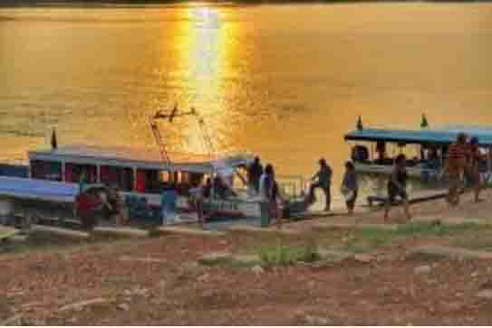 O historiador e escritor Paulo Saldanha (*) define que o Rio Mamoré, “mais que separar, ele une Brasil e Bolívia”. Na foto o sol reflete sua imagem sobre o Rio Mamoré que banha, do lado direito a brasileira Guajará-Mirim e à esquerda a boliviana Guayaramerin, cidades nascidas durante o início do primeiro ciclo da borracha, entre 1880 e 1914, período em que Guajará recebeu, como parte do tratado de Petrópolis, em 1912, o ponto terminal da ferrovia Madeira-Mamoré, desativada em 1972. O “astro rei”, no caso, está no lado boliviano com o pôr do sol refletido sobre o trecho do Mamoré em frente ao porto de Guajará, parecendo dançar sobre a imensidão do rio. No porto diariamente mais de mil passageiros deslocam-se de um para o outro lado, usando pequenos barcos (os dois à direita) e os maiores, estes com mais segurança e capacidade maior de passageiros.