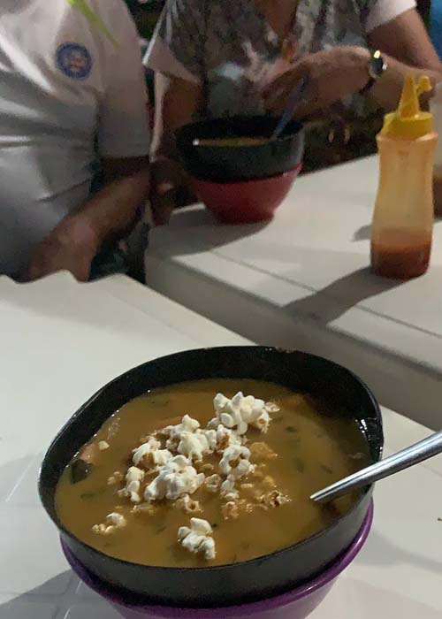 Primeiro foram os negros que fugiam da escravidão para as selvas do rios Guaporé e Mamoré. Na construção da ferrovia Madeira-Mamoré, vieram milhares de trabalhadores oriundos de 40 a 50 países. Nos dois ciclos da borracha o maior contingente foi o nordestino. Em Porto Velho, na fase inicial do Território, foram paraenses. A cassiterita atraiu maranhenses e mais nordestinos. Entre 1960/1990 o então Território recebeu no centro-sul rondoniense milhares de famílias, o que levou à mudança economia, fortalecendo a base para a criação do Estado. Cada grupo trouxe seus costumes, falares e tradições que, aos poucos, se interpenetram fortalecendo a identidade rondoniense. O professor e historiador Amizael Silva repetia a frase (admitia não ser dele): “Rondônia só terá cultura própria quando o gaúcho tomar tacacá na cuia de tacacá e os outros tomarem chimarrão na cuia de tacacá”. (Foto: Guajará-Mirim, o tacacá servido com pipoca)
