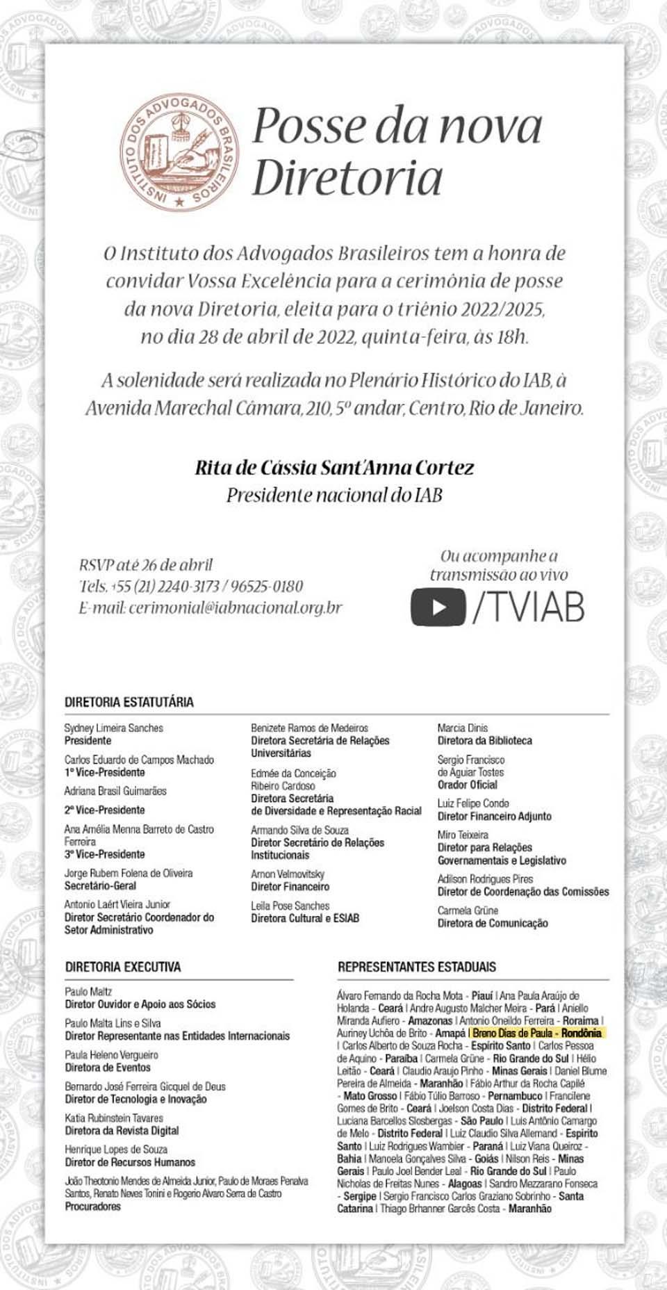 Porto Velho, RO – O advogado tributarista Breno de Paula será o membro-titular de Rondônia na Diretoria Executiva do Instituto dos Advogados Brasileiros (IAB).