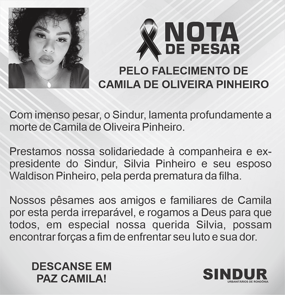 Nota de Pesar SINDUR - Pelo falecimento de Camila de Oliveira Pinheiro