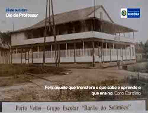 Dentro de um ano o Grupo Escolar Barão do Solimões (foto da1ª sede, em local diferente do atual) que em 1923 era citado em relatório do Superintendente (prefeito) Joaquim Tanajura como única estadual em Porto Velho (então município amazonense), estará completando 100 anos de existência. O colégio, rebatizado “Escola Estadual de Ensino Fundamental e Médio”, foi por duas vezes local de grandes acontecimentos políticos, o primeiro em 1940 quando o prédio, construído por ordem do então diretor-geral da Estrada de Ferro Madeira-Mamoré Aluízio Ferreira, foi inaugurado pelo presidente Getúlio Vargas (), e o segundo, em 1944, foi local para a instalação do Território Federal do Guaporé () e a primeira sede de governo do Território. O patrono é o advogado Manuel Francisco Machado, paraense de Óbidos.