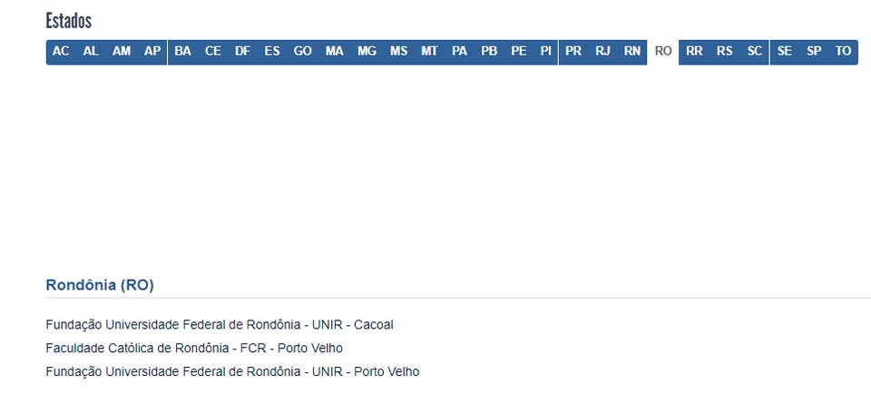 Os demais cursos recomendados são públicos, ambos ligados à Fundação Universidade Federal de Rondônia (UNIR). O primeiro de Cacoal; o outro, da Capital.