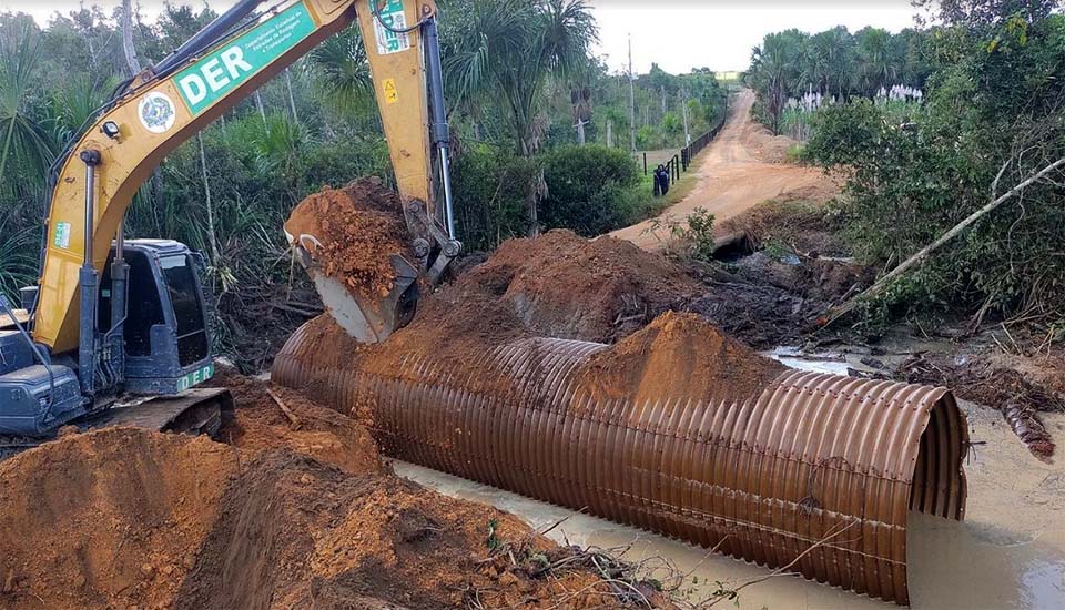 O Governador Marcos Rocha, através do Departamento de Estradas de Rodagem, Infraestrutura e Serviços Públicos – DER, atendeu o pedido do deputado Luizinho e substituiu por Tubo Armco a ponte construída em madeira e a instalação de novos bueiros por Tubos Armcos. A instalação e substituição aconteceu na semana passada.