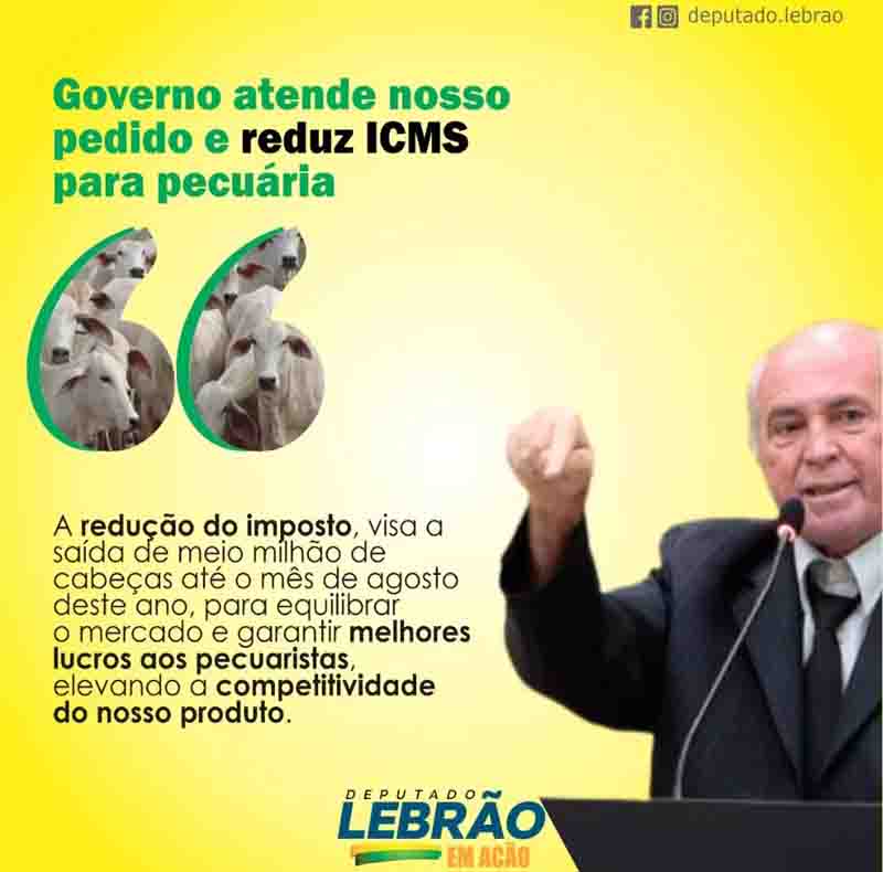 “É uma vitória para os pecuaristas de Rondônia, o Governador atendeu nosso pedido e baixou alíquota do ICMS para a venda de gado para outros Estados. A medida visa escoar meio milhão de cabeças de bovinos até o mês de agosto deste ano e equilibrar o mercado, garantindo melhores lucros aos pecuaristas e elevando a competitividade do nosso produto. Hoje, somos um Estado livre da febre aftosa sem vacinação, portanto temos carne de primeira qualidade, reconhecida no mercado nacional e internacional”, destacou Lebrão.