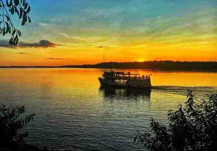 Uma visão fantástica da natureza: o belo pôr do sol com, em primeiro plano, a baía do Rio Madeira, em frente à cidade de Porto Velho. Um grande número de cores enche o céu e seus reflexos aparecem nas águas plácidas do Rio Madeira, o que Aumenta o espetáculo natural para os que vão assistir. Com a chegada do verão, um espetáculo diário, que junta muita gente no porto do Cai n’Água ou, como os passageiros do barco que aproveitam para dar uma volta, e apreciar de dentro d’água o “Até amanhã” do Sol. Para quem conhece os humores do nosso “verão amazônico”, sabe que quando “ele vai dormir” o dia seguinte será com o mesmo ou maior calor. No período o “dia desperta mais cedo” e às 6 a manhã o Sol já está alto.