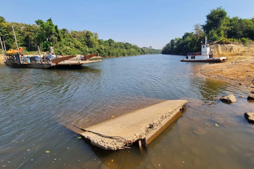 Sem a ponte, a travessia no rio Jamari segue sendo feita com uma balsa, gerando uma série de transtornos para a população de Alto Paraíso e da região.