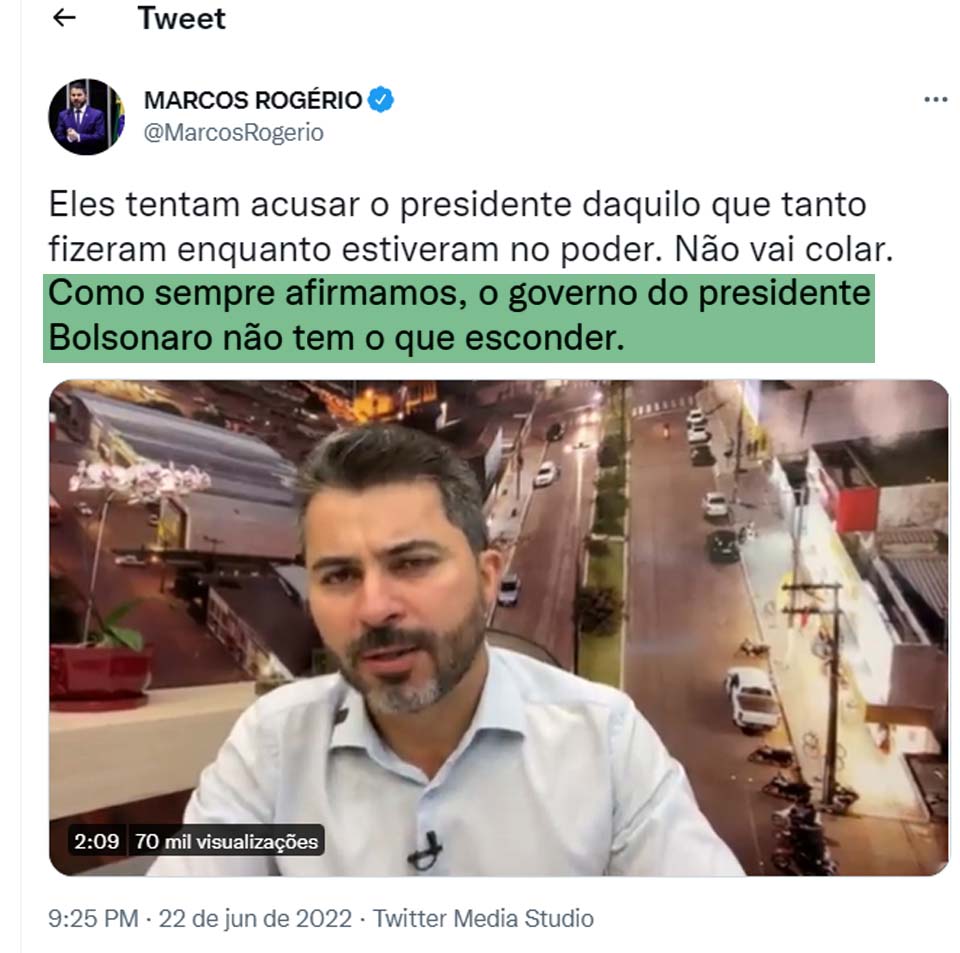 “Como sempre afirmamos, o governo do presidente Bolsonaro não tem o que esconder”, acrescentou.