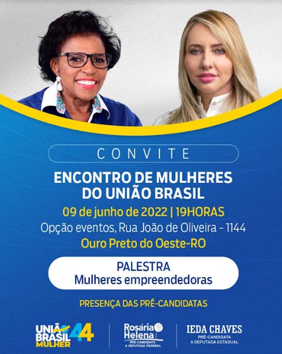 Nesse sentido, ela participa na noite de quinta-feira, 9 , em Ouro Preto do Oeste, do Encontro de Mulheres do União Brasil, no qual acontecerá uma palestra com o tema Mulheres Empreendedoras. O evento organizado pela pré – candidata a deputada federal Rosário Helena acontecerá no espaço Opção Eventos.