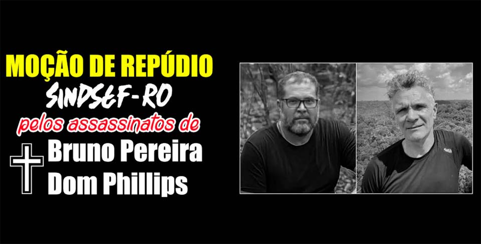 O Sindicato dos Servidores Públicos Federais no Estado de Rondônia - Sindsef/RO na Assembleia realizada no dia 17 de junho de 2022, vem a público manifestar seu repúdio diante do bárbaro e cruel assassinato do indigenista Bruno Pereira e do jornalista Dom Phillips, profissionais que há décadas se dedicaram ao compromisso de proteção a Amazônia Legal e que tinham o pleno reconhecimento e aceitação dos povos originários/ indígenas.