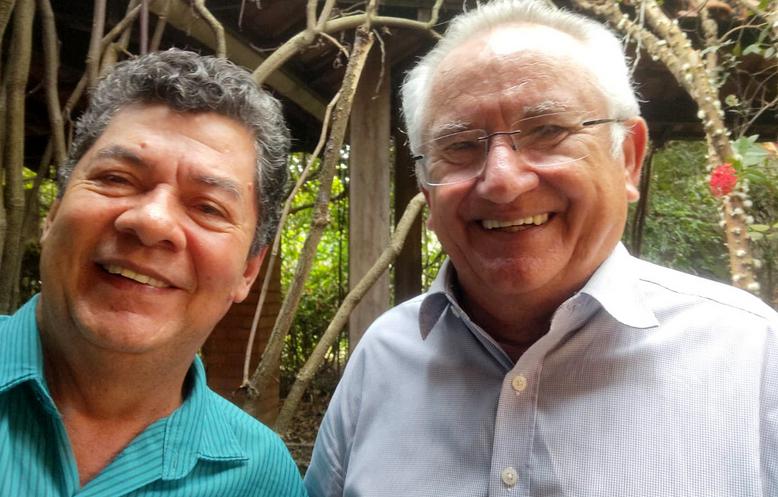José Guedes (e) e Tomás Correia (D), importantes atores políticos na fase inicial do Estado. Guedes, goiano, eleito vereador da capital (PMDB) em 1982, renunciou em 1985 ao assumir a prefeitura, o último prefeito nomeado de Porto Velho. Deputado federal em 1986, em 1988 participou da fundação do PSDB; eleito prefeito em 1992. Tomás Correia, cearense, promotor de Justiça na época do Território, não foi incluído no grupo formador do Ministério Público estadual por ser considerado pelo governador Jorge Teixeira seu “inimigo pessoal”. Tomás foi eleito deputado e um dos que escreveram em 1983 a primeira Constituição estadual. Acusado de “falta de decoro” por Teixeira, que pedia sua cassação, não aprovada pelos outros deputados. Eleito vice-prefeito da capital em 1985 renunciou ao mandato de deputado e assumiu como prefeito em 1986, devido à renúncia do titular Jerônimo Santana. (Texto Lúcio Albuquerque)