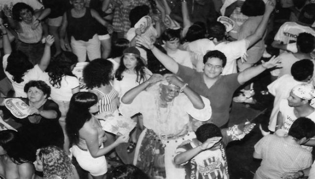 1982 – Carnaval. Rondônia comemora sua primeira folia de Momo na condição de Estado, criado há dois meses. Depois de uma disputa grande pelo título de “melhor escola de samba” rondoniense, com destaque para o duelo entre a Diplomatas e a Pobres do Caiari, a folia se transferia para os salões dos clubes Ferroviário, Ypiranga, Círculo Militar e outros locais, como o Danúbio Azul Bailante Clube. Mas o grande baile, com participação maciça de todos segmentos da sociedade, era no Botafogo, quando milhares de pessoas tomavam todo o espaço do clube da “estrela solitária” – na foto o diretor Camachinho, de braços abertos para receber o folião João Bosco (Bosquinho), “que se caracterizava pelo traje de noiva, sua marca registrada nos grandes eventos carnavalescos”, como narrou o turismólogo Ivo Feitosa. Por volta das 5:30 os foliões iam para a Praça Rondon, participar do “encontro dos blocos”. (F. Ivo Feitosa/texto Lúcio Albuquerque)