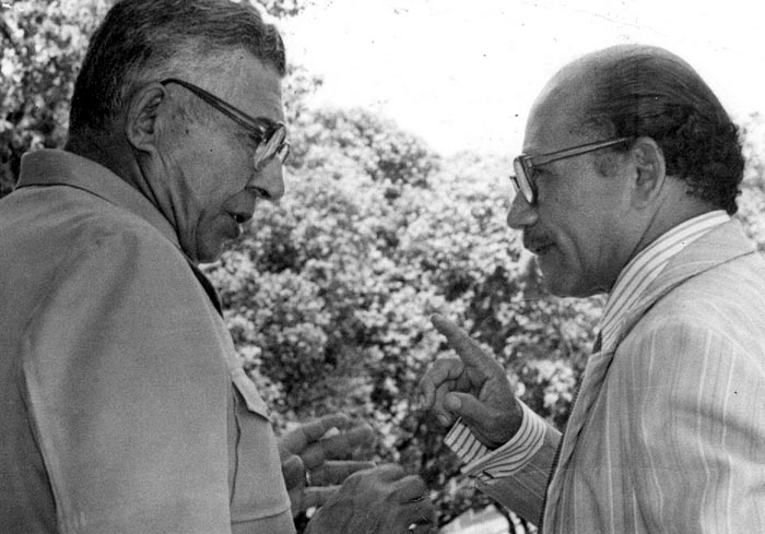Uma conversa onde o tema era, nem é preciso imaginar outra coisa: Rondônia, ainda mais que fazia poucos meses que o Território deixara de existir e o Estado foi instalado. De um lado, com seu traje preferido, o “safari”, o governador Jorge Teixeira e de outro o jornalista Euro Tourinho, dois amazônidas, Teixeira nascido no Rio Grande do Sul e Euro em Dourados, MS, mas ambos de grandes serviços prestados a Rondônia. O governador foi antes comandante do Cigs, implantador do Colégio Militar de Manaus, cidade da qual foi prefeito, e governador de Rondônia, faleceu aos 65 anos, em 1987, menos de dois anos depois de deixar o Estado. Euro, jornalista, durante mais de 50 anos foi diretor do jornal Alto Madeira, faleceu aos 96 anos. (F. Rosinaldo Machado).