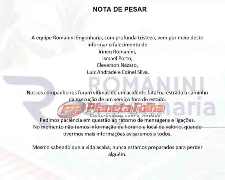 Eles iriam fazer um trabalho de implantação de placas solares fora do estado de Rondônia, no Mato Grosso. A empresa divulgou em nota o nome dos cinco trabalhadores que morreram, sendo eles, moradores de Ji-Paraná: Irineu Romanini, Ismael Porto, Cleverson Nazaro e os moradores de Rolim de Moura: Luiz Andrade e Edinei Silva.