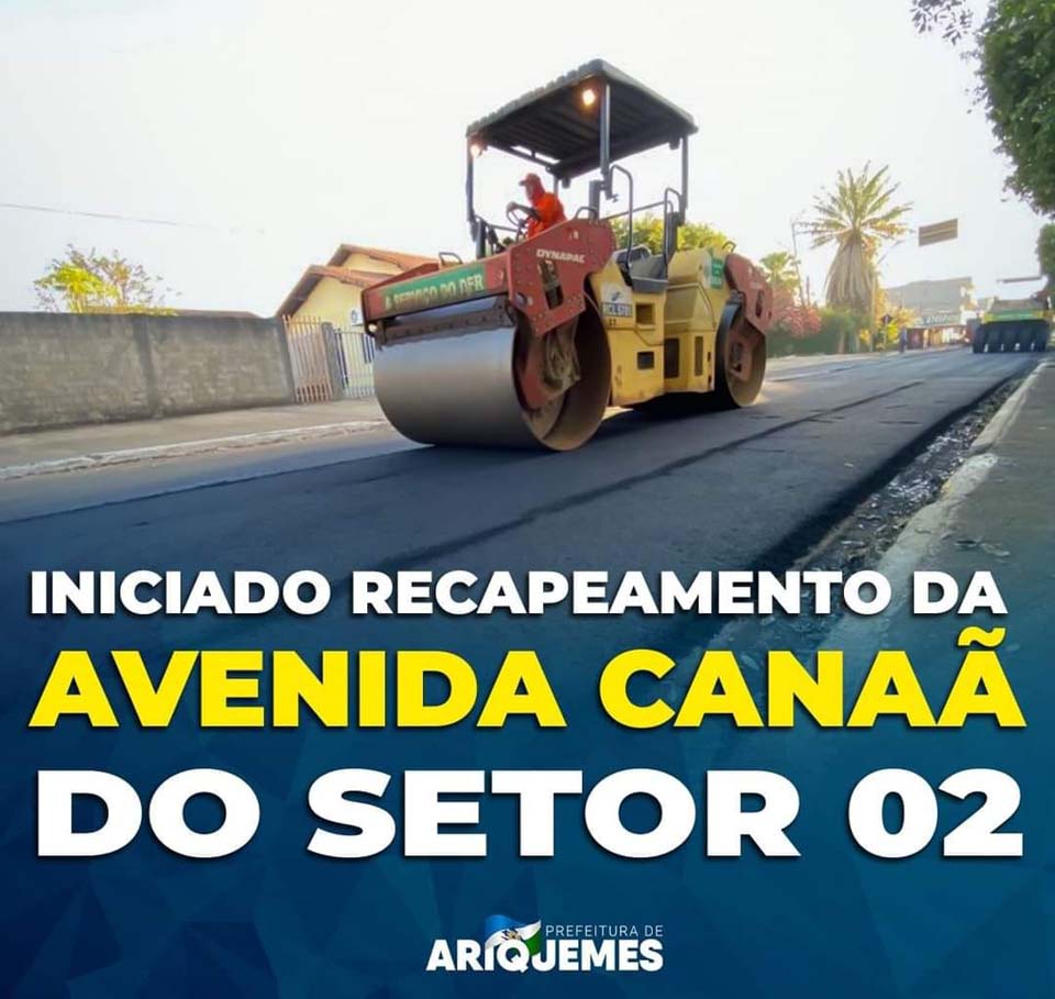 Ariquemes;RO - As obras de recapeamento asfáltico da Avenida Canaã do Setor 02 estão a todo vapor, além de ser rota de acesso ao Setor 02, a Canaã liga outros importantes bairros, como: Setor 04, 25 de Dezembro, Parque das Gemas, Apoio Social, Jardim Primavera e Nova União I. Os serviços estão sendo executados a pedido do presidente da Assembleia Legislativa do Estado de Rondônia, deputado Alex Redano.