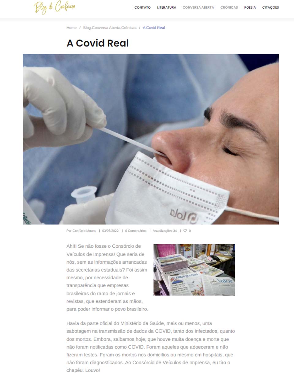 “Havia da parte oficial do Ministério da Saúde, mais ou menos, uma sabotagem na transmissão de dados da COVID, tanto dos infectados, quanto dos mortos. Embora, saibamos hoje, que houve muita doença e morte que não foram notificadas como COVID. Foram aqueles que adoeceram e não fizeram testes. Foram os mortos nos domicílios ou mesmo em hospitais, que não foram diagnosticados. Ao Consórcio de Veículos de Imprensa, eu tiro o chapéu. Louvo!”, encerrou.