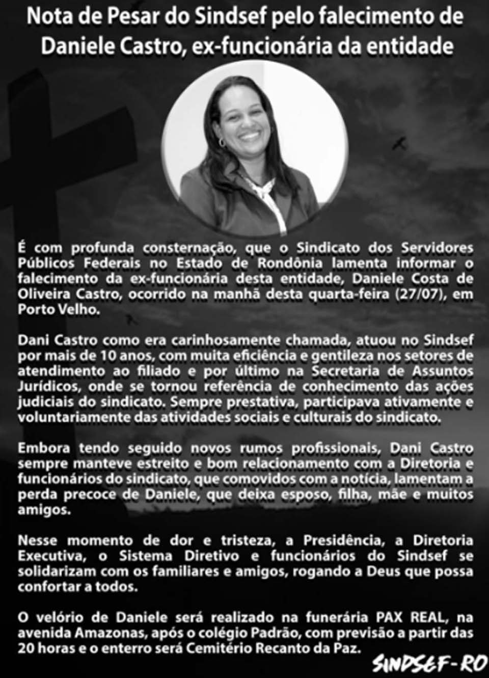 SINDSEF-RO EM LUTO – Nota de pesar pelo falecimento de Dani Castro